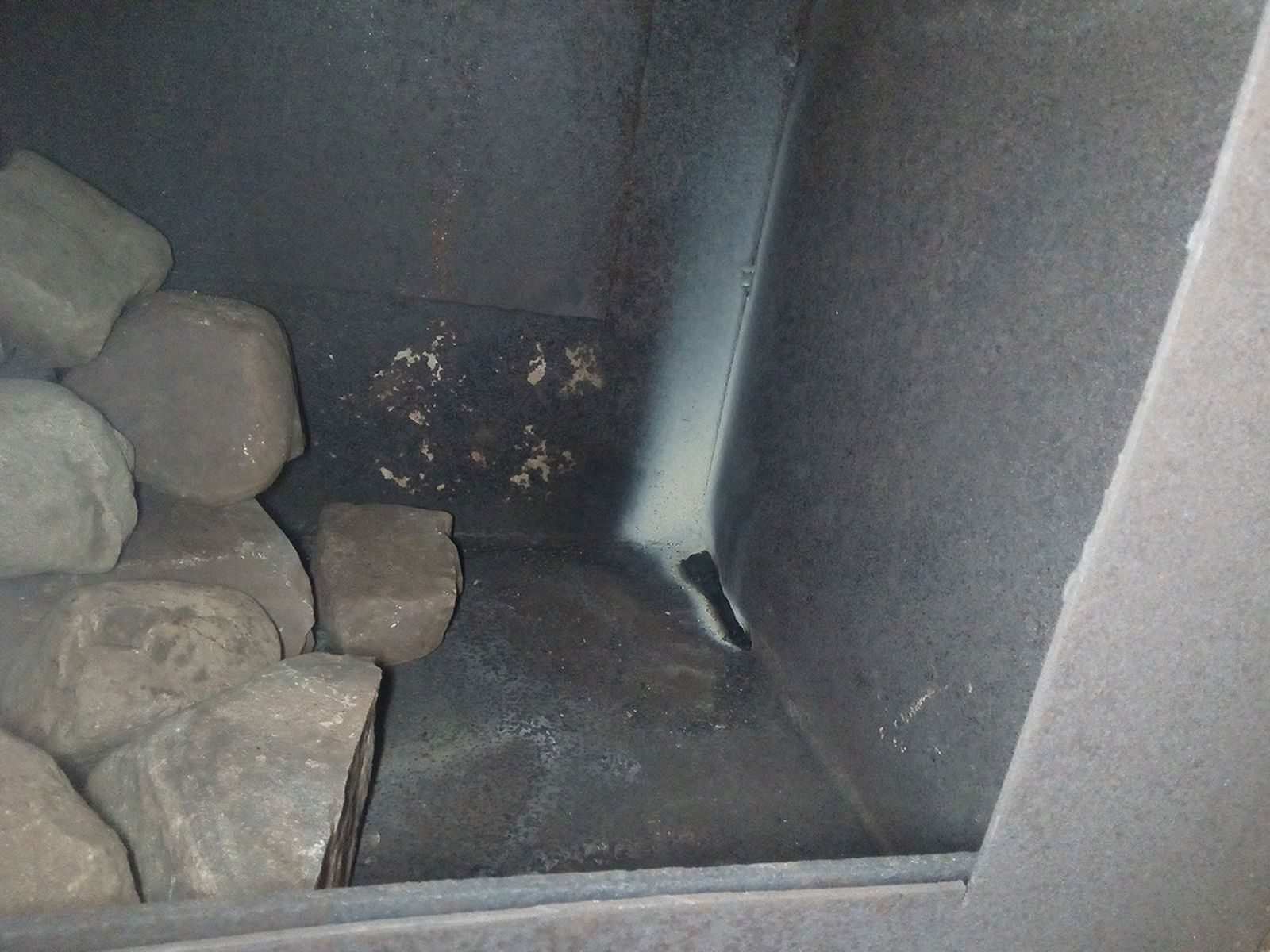При этом печь иногда подкидывала сюрпризы в виде отсутствия тяги, как явления, в середине процесса протопки, в общем вела себя хуже Паробомбы с полной топкой во время протуберанцев на Солнце. (Бомбочка, прости за сравнение, я тебя люблю)) Оказалось, что ржавчина внутри трубы осыпалась и забила вход в нее полностью. Часть дыма иногда попадала в парную, я не мог найти его "источник", что добавляло напряженности в наших отношениях.