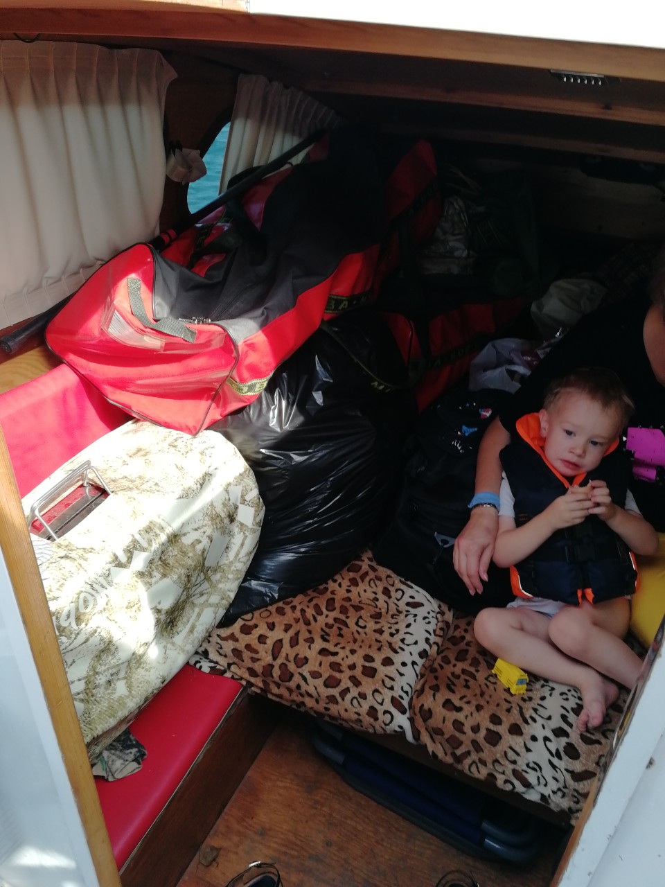 Длина кокпита стандартного Спутник-2 230см, если каждый гребец занимает около метра длины, то под вещи останется всего 30-40 см. Маловато. У меня кокпит 250 см, уже кое что поместится. Но всё равно со стандартным набором вещей влезть не получится.