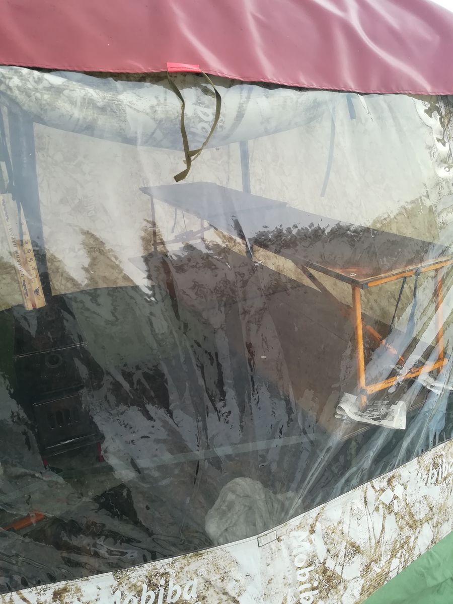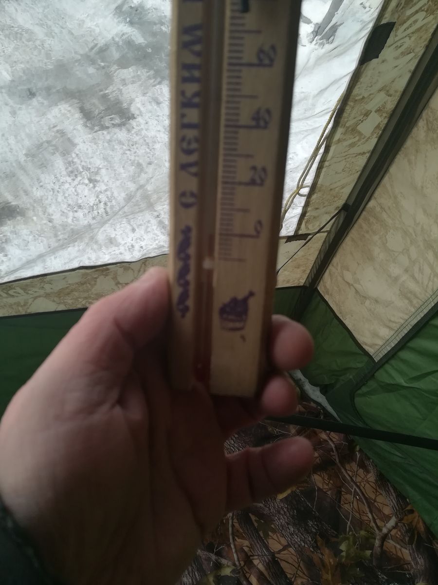 Чтобы далеко не ходить, МБ-10 была развернута прямо около гаража, полоки внутрь, ПУ-10 на всякий случай и Медиана без камней. На улице -15 без ветра, но пока устанавливал палатку, умудрился как-то надышать в ней практически до нуля (а может быть, банный градусник отрицательные температуры некорректно показывает)