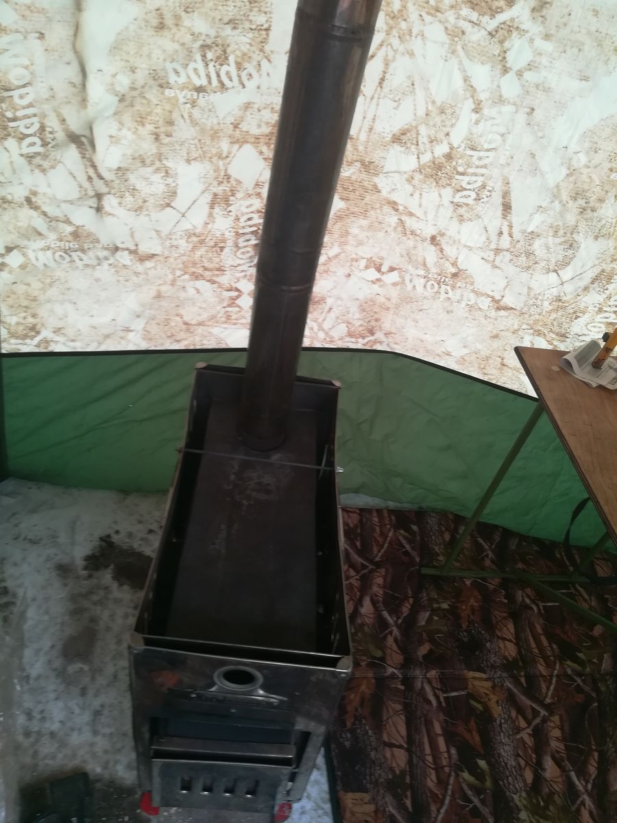 А вот свыше 130 разгонять не стал, "поплыла" разделка, сквозь ПВХ начал проступать корд и прочие тревожащие взгляд вещи. Все же нужно было изнутри палатки напялить на дымоход сантиметрах в 20 от разделки еще одну пластину разделки в качестве экрана.
