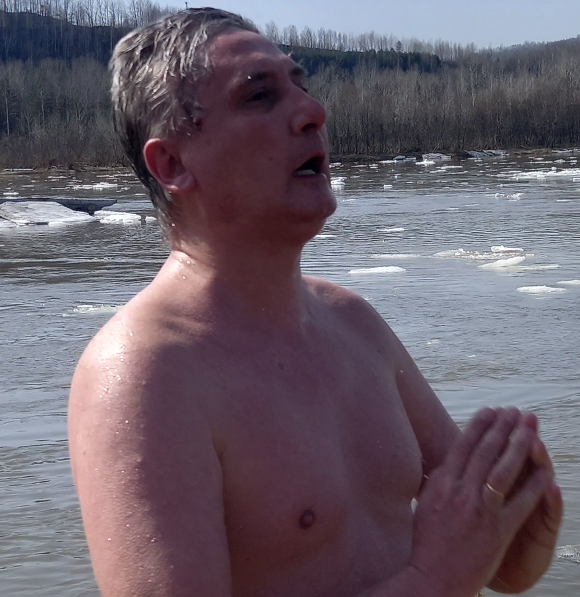 Кайф! Только вглядитесь в это довольное лицо, вынырнувшее из апрельской Томи, и смывшее с себя груз зимних забот и хлопот