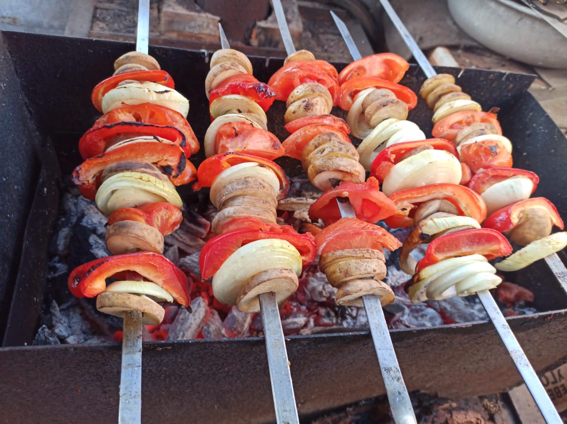 Вегетарианский шашлык тоже готовили накрывая поддоном