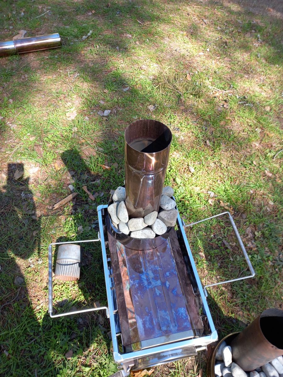 Сергей,у тебя более правильный девайс,у меня эконом вариант. Труба на Печи Дюна в твоём исполнение отдаёт максимум тепла на камни,более быстрый нагрев,экономия топлива. Кто будет использовать девайс от Жиги,окуратней лейте воду,что бы внутрь печи по трубе не попало на дрова,из за этого баня у нас закончилась через полтора часа. Ещё хотел использовать шляпу от ППГ-90,но там мельче камень нужен. В варианте который использовал в бане,вес 10 кг жадеита,и то не весь вошёл. Первое фото.