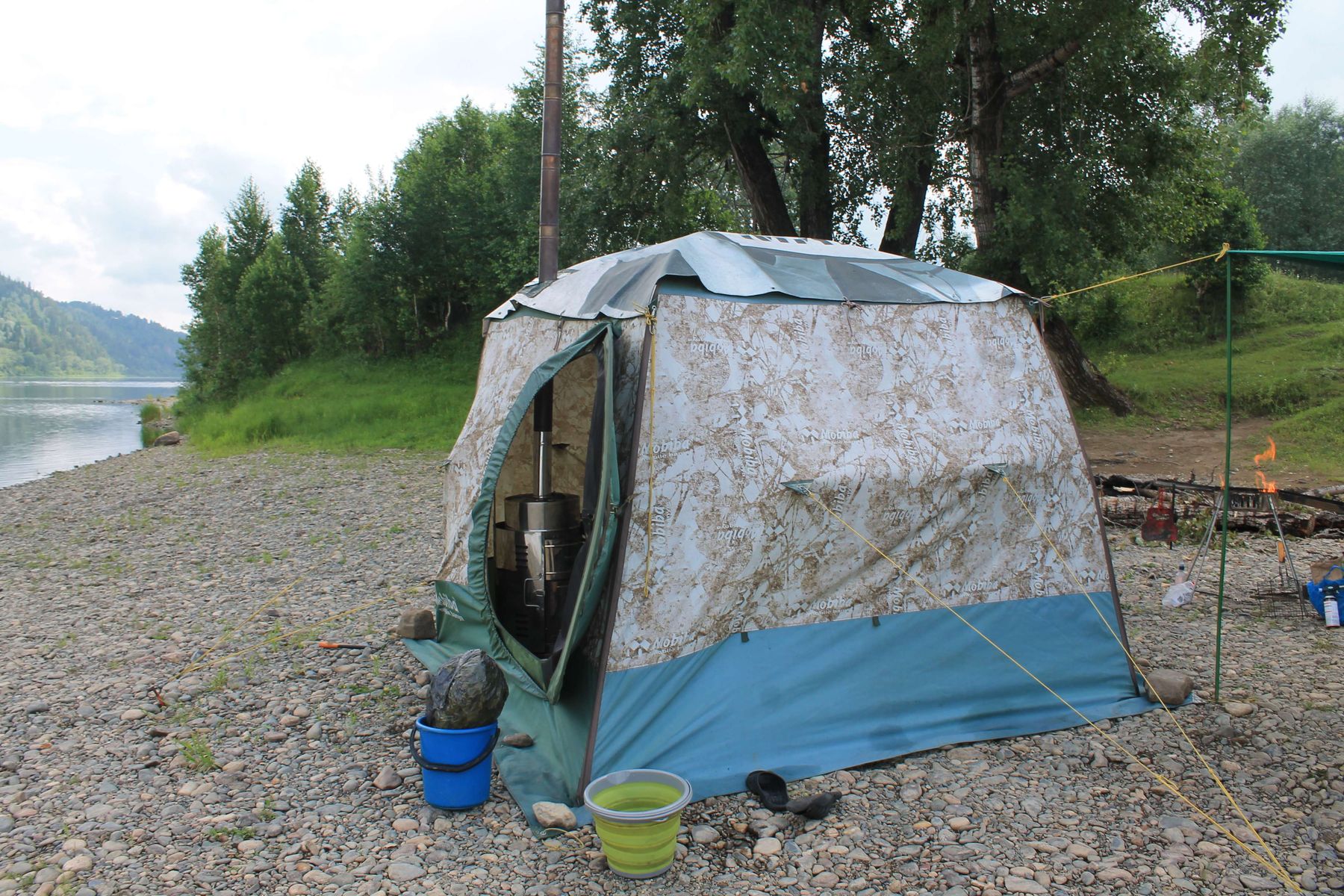 А на следующий день так же просто трансформировав жилую палатку обратно в баню.