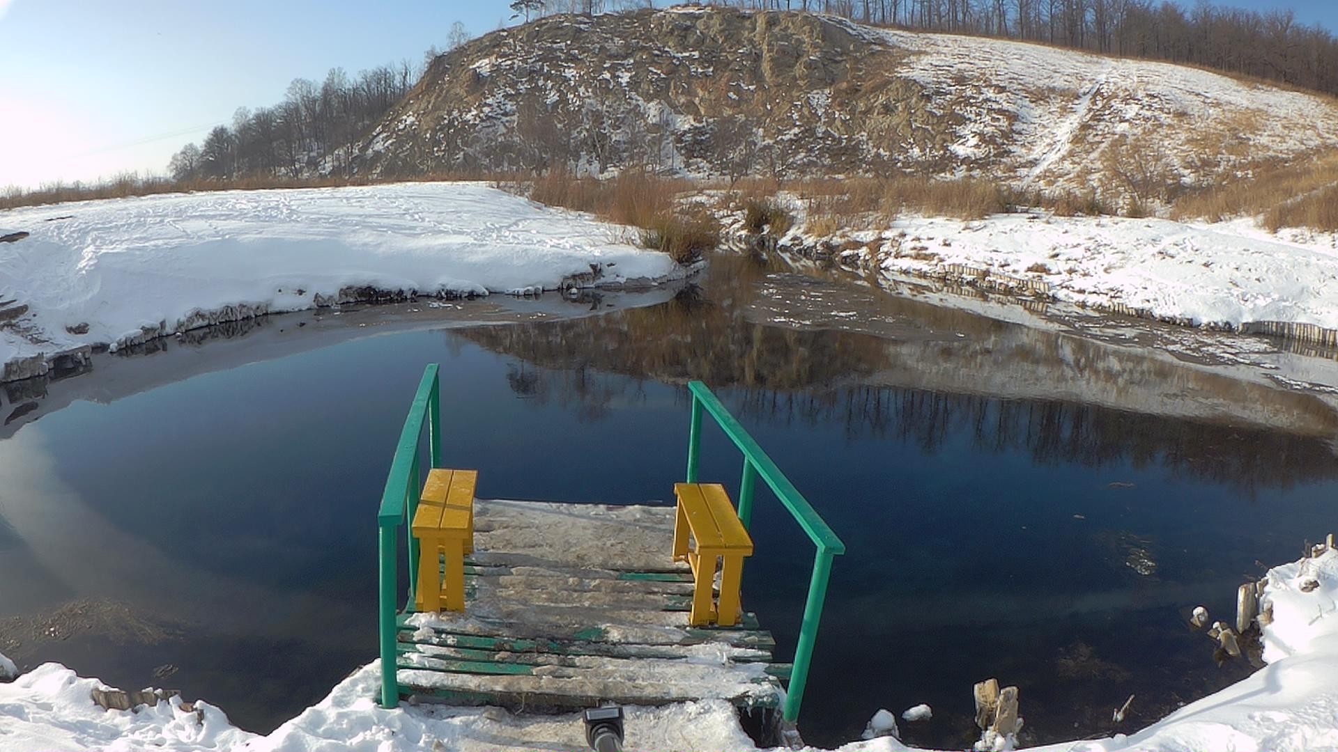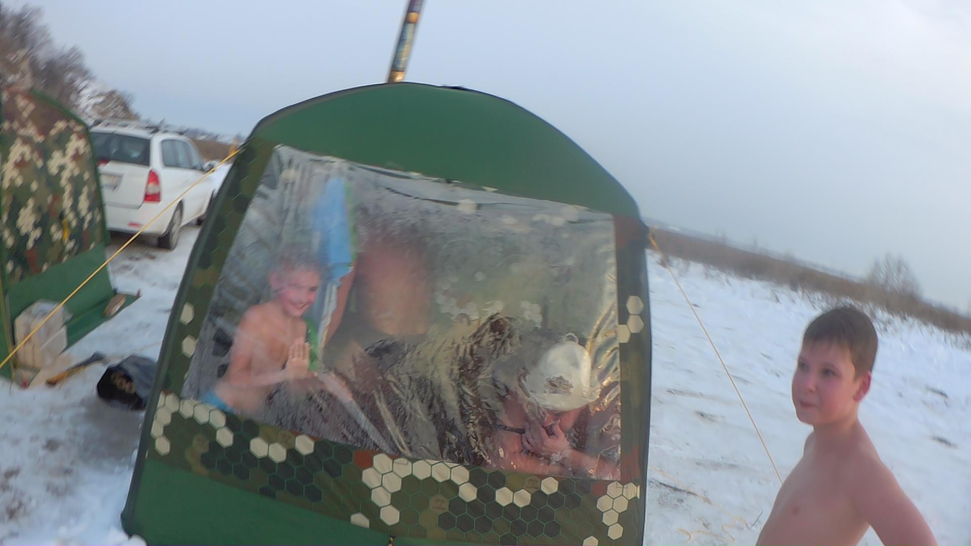 Ездили на незамерзающее карстовое озеро. Ставили 2 бани МБ-10 и Кайфандру в качестве раздевалки. Парились!