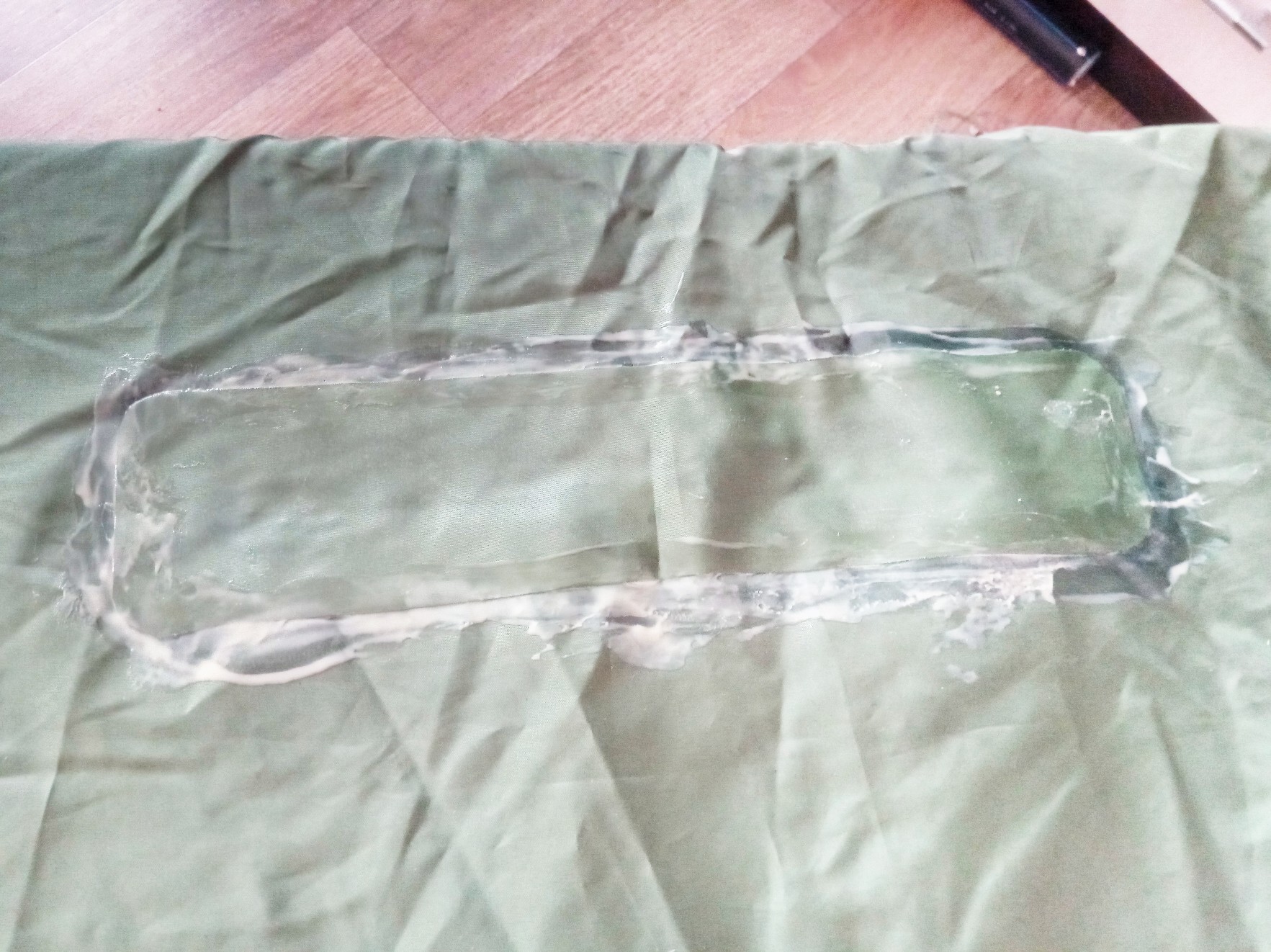 т.е. она заходит на края заплатки , по соотношению цена- объём она выигрывает в разы у любого клея,) если какие объёмы герметизировать большие самое то, мне осталось швы ей пройтись, хоть и не протекает тент, но так для самоуспокоения) , в моём случае она больше подходит, да и чтоб всю банку не таскать перелил немного в меньший объём, чтоб если что, в полевых условиях произвести необходимый ремонт.