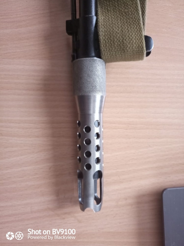 Но на данном карабине задачи по повышению кучности, точности и всего прочего не стояло (штатное состояние вполне устраивает), потому резьбу я использовал совсем для других целей: для установки пламягасителя. А вот это – нужная штука. Дело в том, что оружие с «голым» (т.е. без ДТК или пламягасителя) дульным срезом, дает шарообразную вспышку выстрела, по крайней мере, со стороны стрелка она кажется именно такой. Эта вспышка вредна тем, что при стрельбе в сумерках она «засвечивает» глаза стрелка, причем – в самом нужном месте. Это всегда некомфортно, а очень часто – критично, и даже опасно. Именно поэтому на дульную резьбу был установлен пламягаситель. Функция его проста: он «рассекает» шар пламени на сектора. Тоже, конечно, приятного мало, но поле зрения стрелка оказывается «засвеченным» не полностью, а лишь частично: это примерно как смотреть на мир через радиальную решетку из толстых прутьев. Можно, конечно, установить какой-либо мощный пламягаситель или ДТК (например, Ильина или «Ночь»), но это – дополнительная масса и габарит, потому – отказался. Вообще говоря, именно по причине борьбы с ослеплением ДТК или пламягасители установлены на всех моих рабочих стволах. Осталось только автоматический газовый регулятор (переключение автоматики карабина с 12х70 на 12х76) поставить, и карабин станет отвечать всем предъявляемым мной к нему требованиям. Но о производстве данного узла отечественными оружейниками (по крайней мере, о качественных и надежных) я не слышал, а взять его импортного производства после введения санкций стало практически невозможно… по крайней мере по цене, не превышаемой стоимости самого карабина.