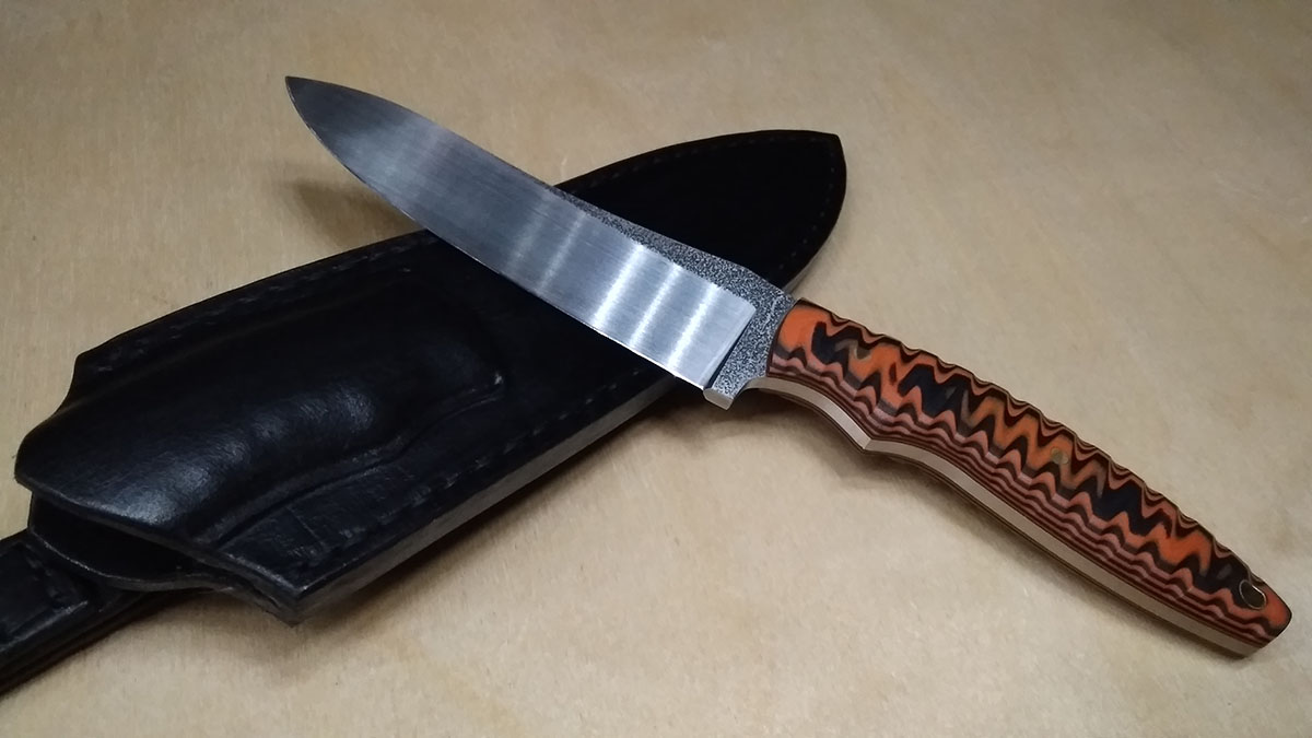 А тут подходит "сделай нож, не срочно, месяца через два, три". Ответил, что попробую, но не обещаю. ТЗ согласовали. Решил делать сразу два, т.к. один из старших племянников еще без ножа. И тут началось, то понос, то золотуха, походы, дача... Заказчик, а он сторож на арендуемой территории, периодически подкалывал, "ну хоть к следующему августу доделай". Так и получилось. :) Причем сами ножи к прошлому новому году родились, а вот ножны ну никак, не получается с кожей работать.