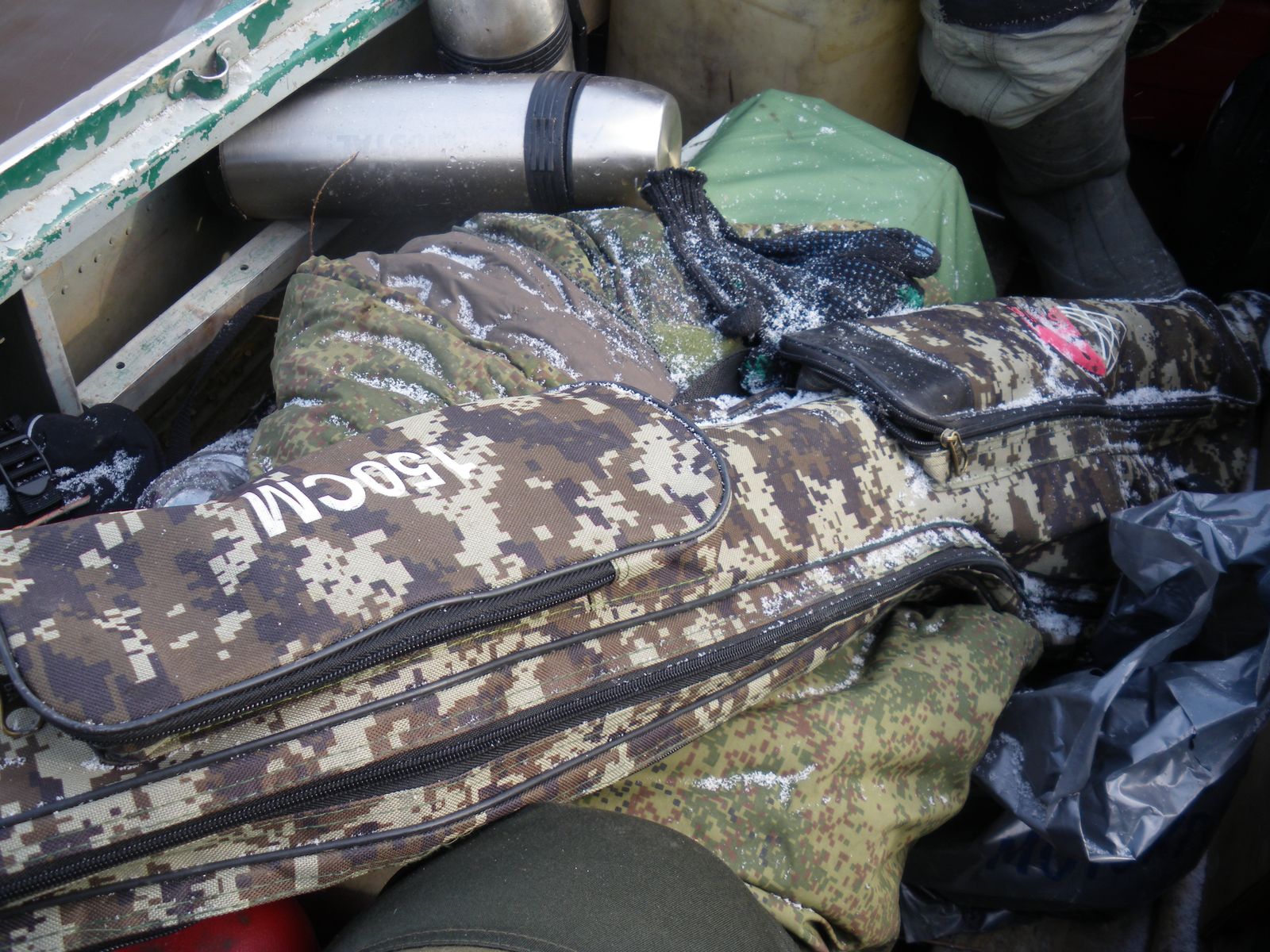 Но, долго ли, коротко ли, добрались мы, наконец, и до Чуйки, нашли место под временный лагерь и зачалили лодку. Разгрузились. Снаряги оказалось на удивление мало! Кстати, спасибо Алексею Александровичу за просторные чехлы для изделий «двадцать второй» серии! В свободное пространство легко можно впихнуть, например, МБ-10! Но я (помимо комплекта самодельных арматурных кольев в термоусадке, которые тоже места жрут – мама, не горюй!) там размещаю «шикардос» в чехле, пару утепленных полиуретановых полугалош-полусапог с вкладышами (у нас их ласково называют «ояшиками», уж не знаю, почему), топор и флиску-подбушлатник, что экономит несколько мест багажа.