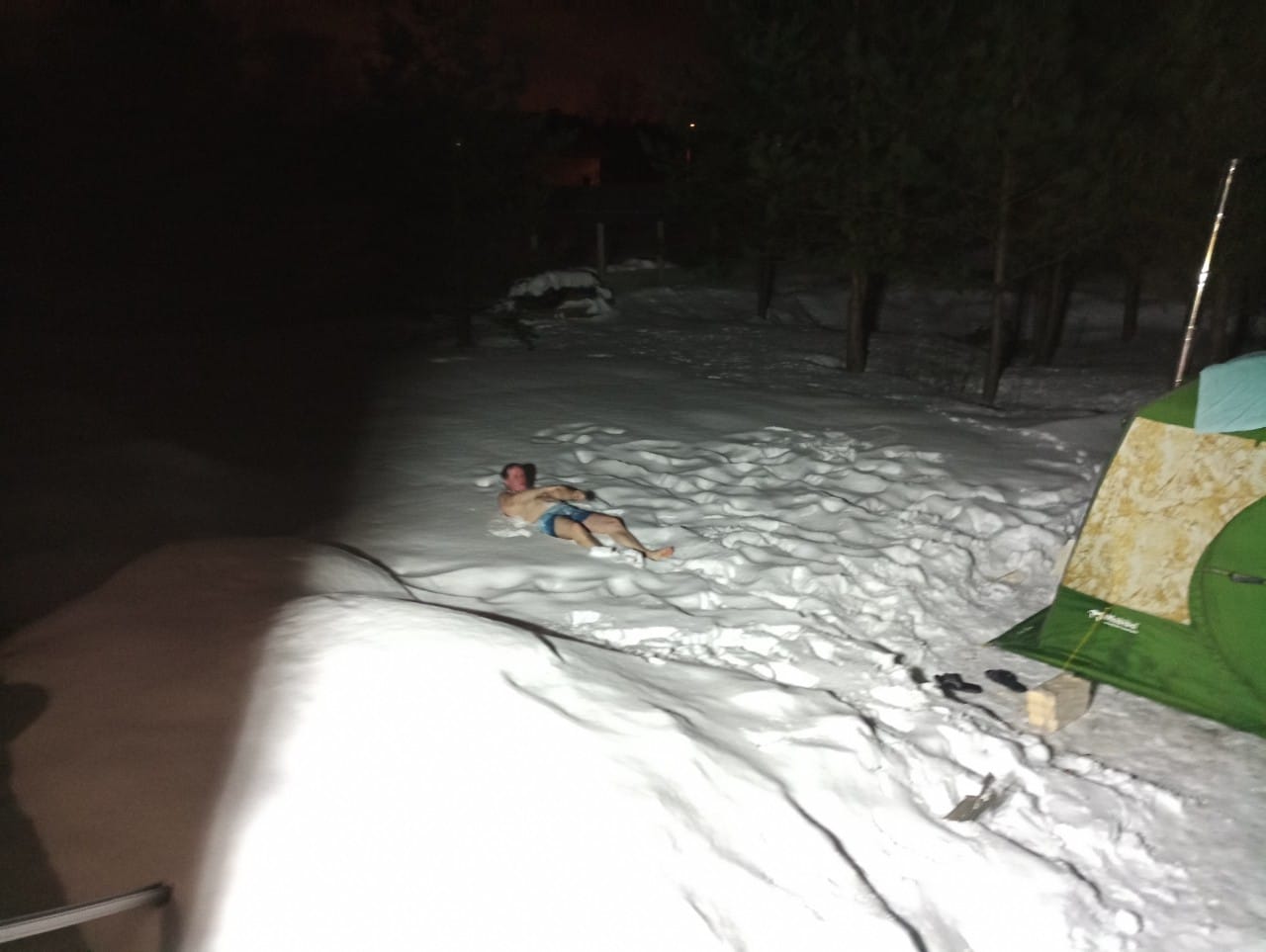 Попарились нормально: ныряли в снег, обливались из ведра.