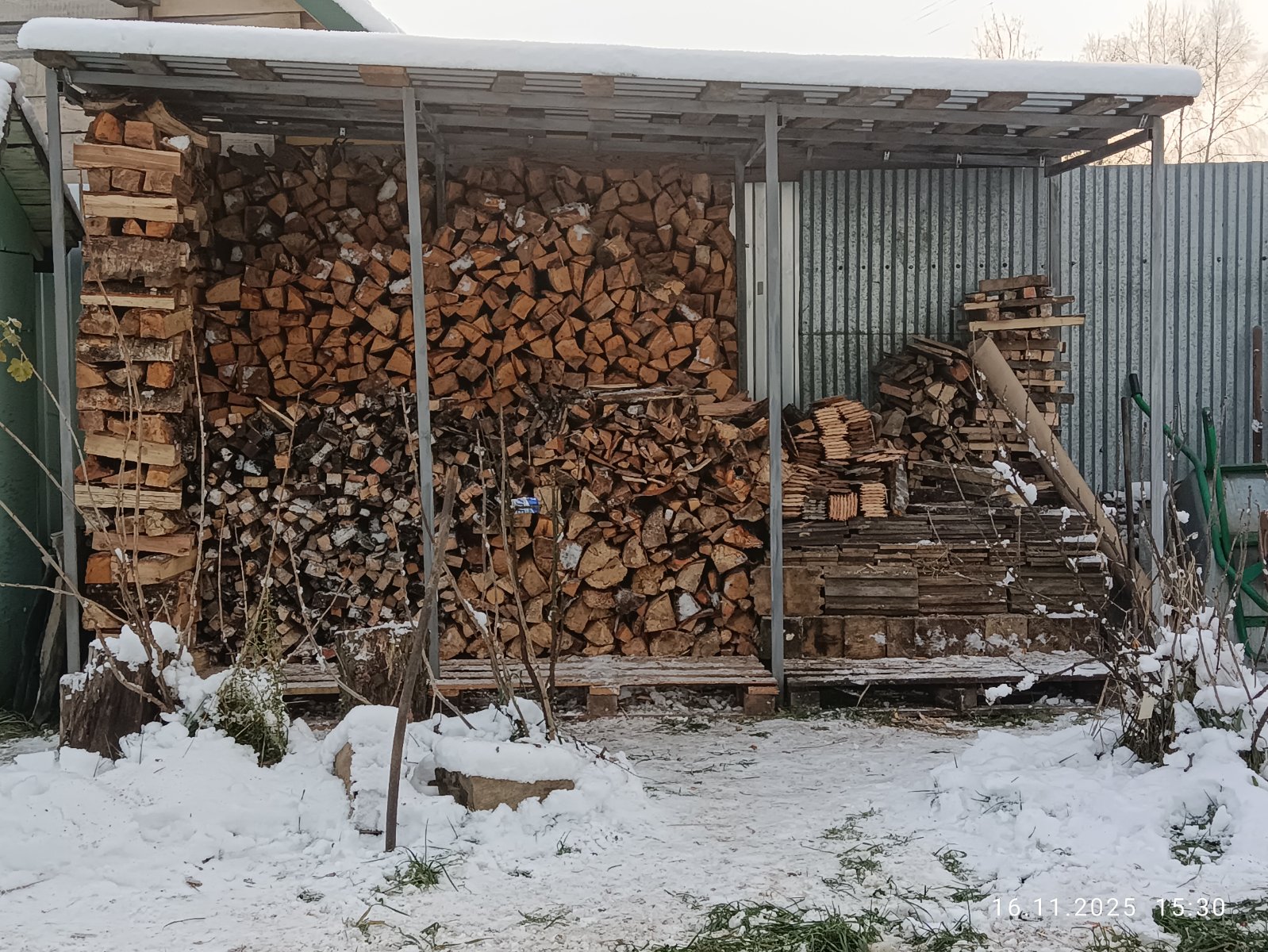 Да там не доложили около 0.5 куба. Я бы не покупал, но настаивал и финансировал папа. Нам этих дров на несколько лет хватит. В год обычно уходит на баню 1 куб дров. Ещё, около куба, обрезки сухих сосновых досок лежат под навесом, нет времени попилить.
