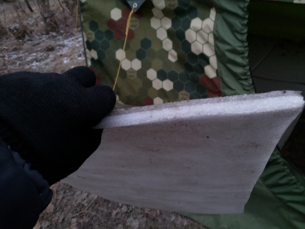 В тему про утепленный пол добавлю 5 копеек. Вообще то в гараже лежит стандартный ПУ для МБ-15, но глядя на это замечательное изделие, рука не поднимается изговнякать его во время банных процедур, которые удалось осуществить еще до того, пока не выпал снег. Проблему решал следующим образом - в Леруа приобрел 8 плит шумоизоляции 600х1000х20 мм, раскладываешь их в палатке, сверху накрываешь старым банером + деревянная решетка и ... море позитива. Блин, аж мурашки побежали, мобибазависимость это сила.
