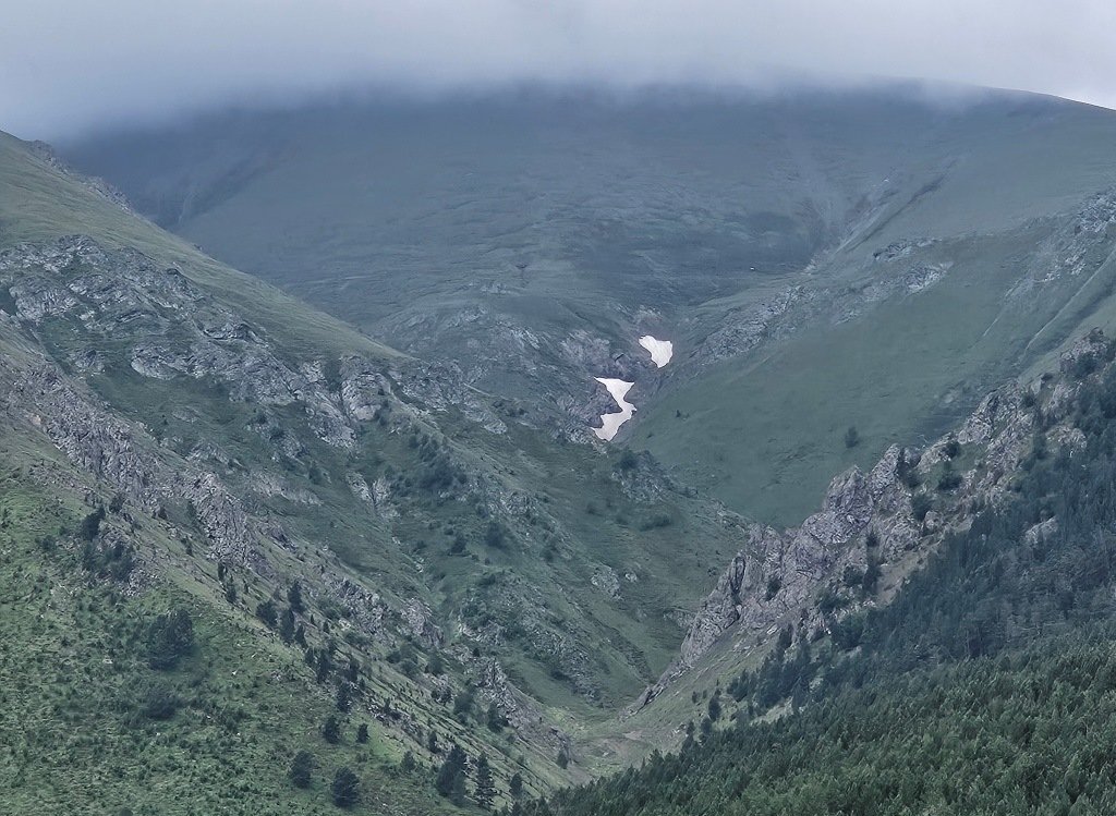 На верху еще снег лежит – не проехали - застряли на подъеме