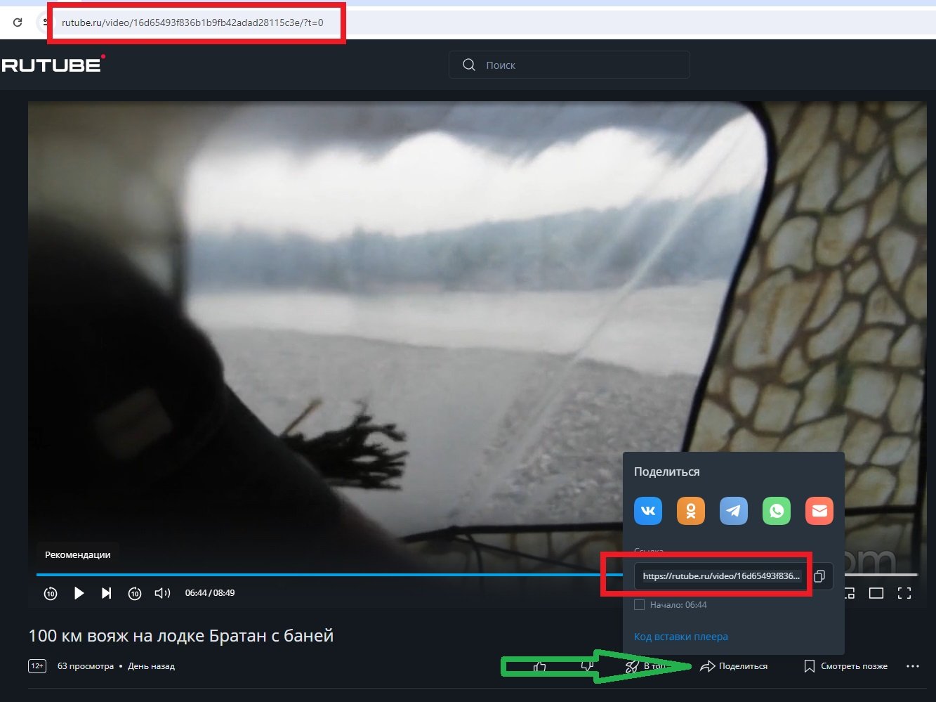 1. На странице с видео нажимаем кнопку "Поделиться".
