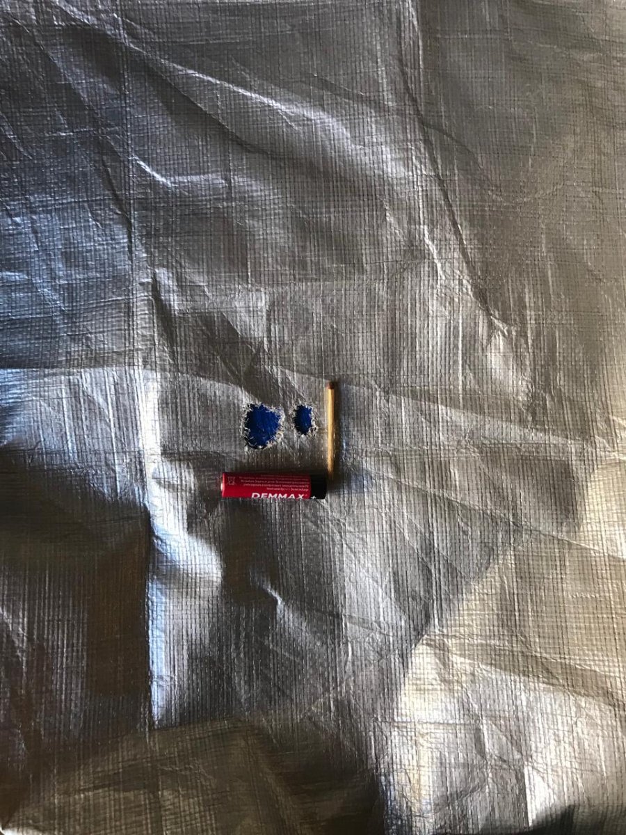 В последней поездке,после крайней ночёвки,утром обнаружил дырку в полу. Пользовался искрозащитный ковриком для Согра уже лет пять,такого не было не разу и на тебе. Предполагаю ,когда сушил утром палатку и пол тёплый,печка Дюна-3 работала на форсаже,она ниже чем Согра,коврик искрозащитный имел повреждение посередине,годы берут своё. И вот итог,фото прилагаю.