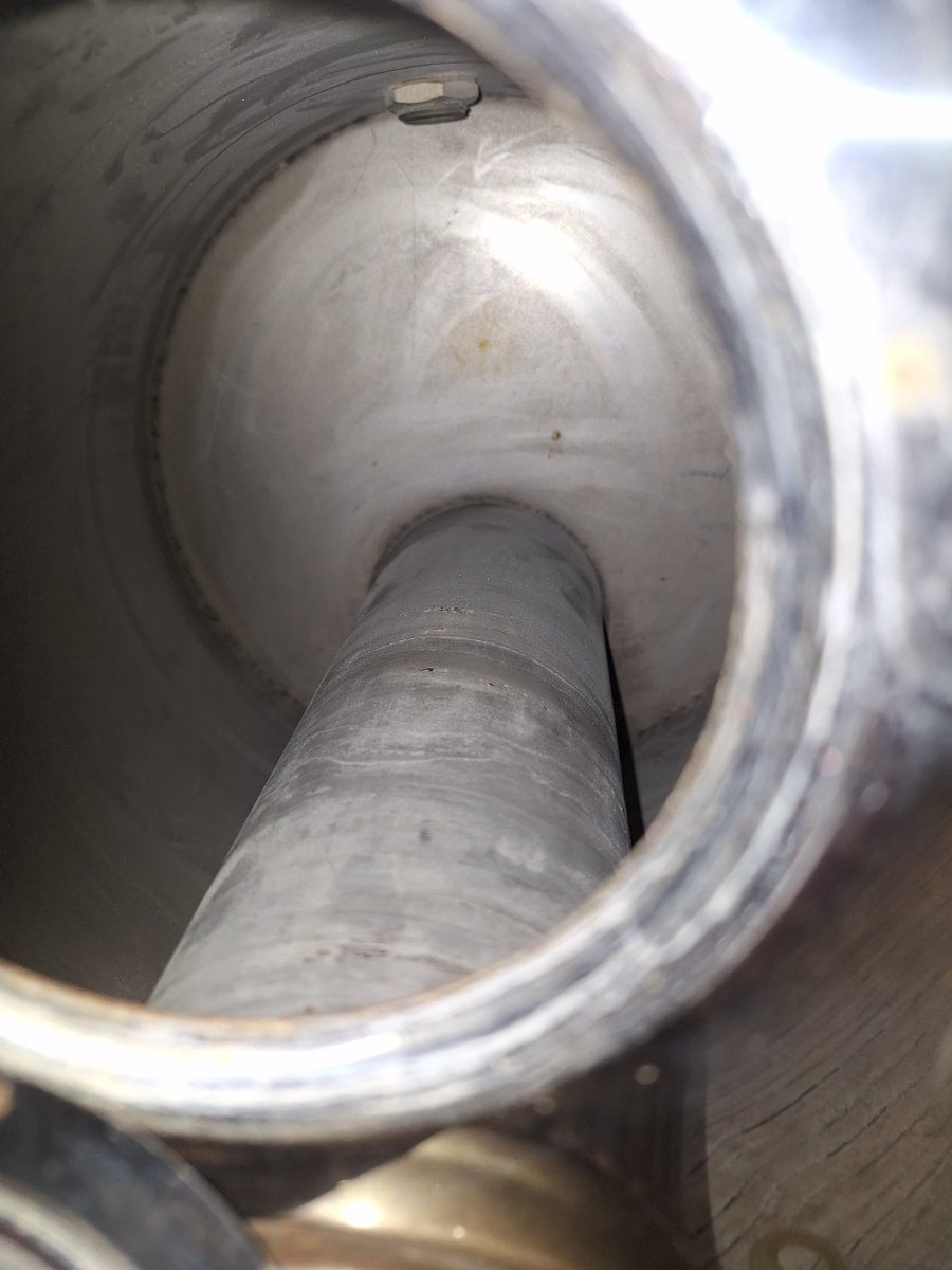 Я у своего бака срезал верхнюю часть гофротрубы, теперь дымоход после бака ставится по конденсату, что считаю более правильным вариантом, чем по дыму, и в сумке не торчит торчун трубы.