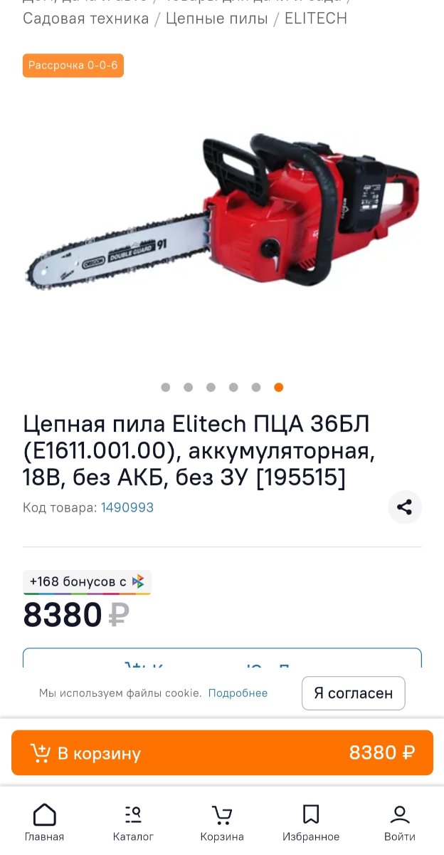 На выходных пилили аккумуляторной цепной пилой Elitech доски для для временной мини веранды-лестницы,доска и сырая и сухая. До этого был с ней выезд на дом,три яблони испиленных,высадили аккумуляторы в ноль. Мне как дилетанту,в цепных пилах,очень понравилось,тихо,быстро,сильных усилий не надо делать. Аккумуляторы,их 2 шт стоит,израсходовали 50 процентов заряда,пока сваяли,пиле второй год,с работы зятя,для командировок,пользуются редко. Сегодня посмотрел цену,от 8 т.р. плюс отдельно зарядное устройство и 2 акума и того комплект получается от 17 т.р.