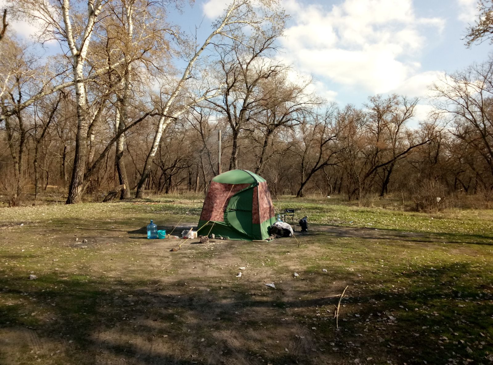 Вот такое вот выбрали место, где поставить и где сохранилось немного снега: