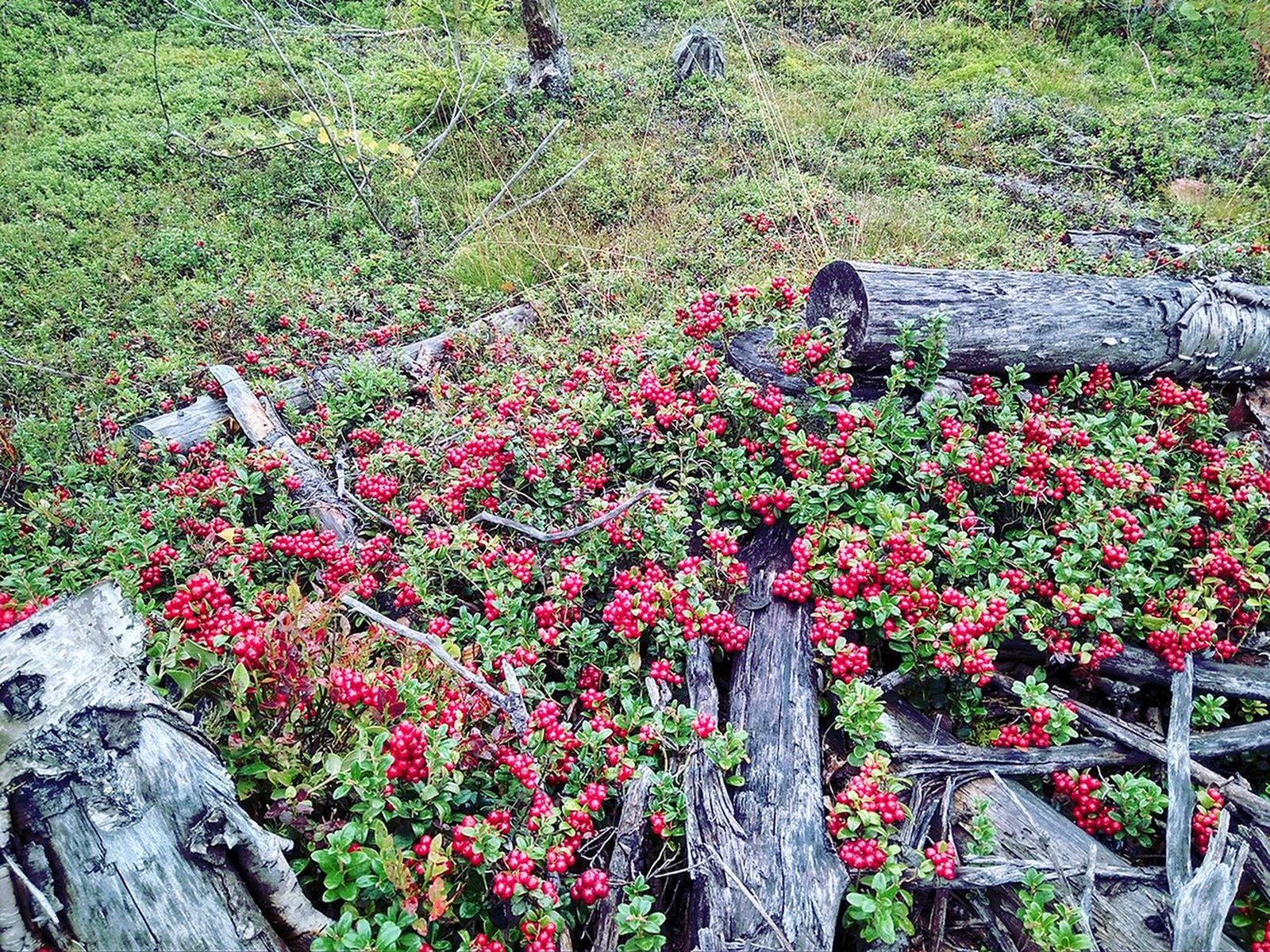 И начались пешие прогулки по окрестностям. Хотя нет, первая прогулка была уже в первый полноценный день на озере, пока дети исследовали береговую линию, ища удобную стоянку. Люблю ходить по тамошним лесам и болотам. Ну заодно разведка на предмет сбора ягод. Кто-то скажет, зачем собирать, ведь купить не проблема, тем более поселок рядом. Но для меня процесс сбора диких ягод при таких богатых урожаях является отдельным удовольствием, во время которого руки заняты, а голова свободна.)) Да, брусника была чуть белобока еще, но зато гарантировано до дома довезем. Были и прогулки просто ради прогулок, километров до 15 наматывали. Опять же леса, болотца, речка в брод. Брусника с гроздьями как у винограда, клюква, ссыпающаяся в след от твоего сапога.
